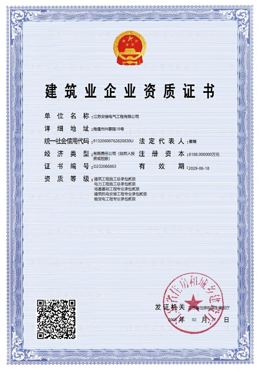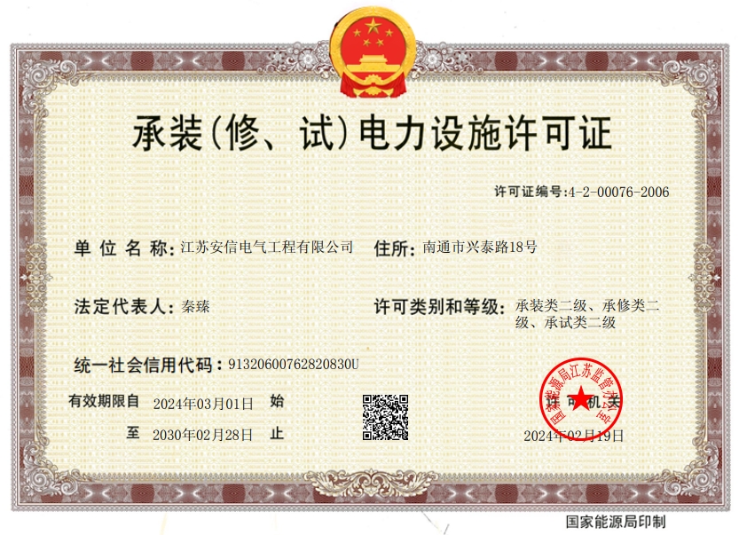 在創(chuàng)業(yè)之初,公司就堅(jiān)持高起點(diǎn)的戰(zhàn)略思路,廣納賢才,集聚行業(yè)精英,創(chuàng)新發(fā)展,做優(yōu)企業(yè)品牌?,F(xiàn)已取得:承裝二級(jí)、承修二級(jí)、承試二級(jí),電力工程施工總承包二級(jí),輸變電工程專業(yè)承包二級(jí),建筑工程施工總承包二級(jí),建筑機(jī)電安裝專業(yè)承包二級(jí),地基基礎(chǔ)專業(yè)承包二級(jí)資質(zhì)證書,并通過(guò)了質(zhì)量、環(huán)境、職業(yè)健康和安全管理體系認(rèn)證,確保各項(xiàng)工作有序管控。